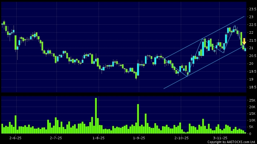 Disclaimer:The information, financial market data, quotes, charts, statistics and / or various technical analysis indicators are automatically generated based on the analyses and interpretations of publicly available information and should be used as references only at your own discretion. Such automatically generated content does not reflect the views or opinions of AASTOCKS.com Limited nor does AASTOCKS.com Limited make any guarantees to their accuracy, completeness, timeliness or correctness. You are advised to consult independent professional advice to verify pricing information or to obtain more detailed market information. Any uses of information or trades executed following the said automatically generated content are taken at your own risk for your own account.