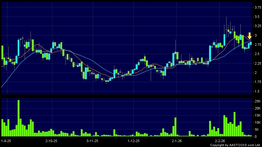 Disclaimer:The information, financial market data, quotes, charts, statistics and / or various technical analysis indicators are automatically generated based on the analyses and interpretations of publicly available information and should be used as references only at your own discretion. Such automatically generated content does not reflect the views or opinions of AASTOCKS.com Limited nor does AASTOCKS.com Limited make any guarantees to their accuracy, completeness, timeliness or correctness. You are advised to consult independent professional advice to verify pricing information or to obtain more detailed market information. Any uses of information or trades executed following the said automatically generated content are taken at your own risk for your own account.