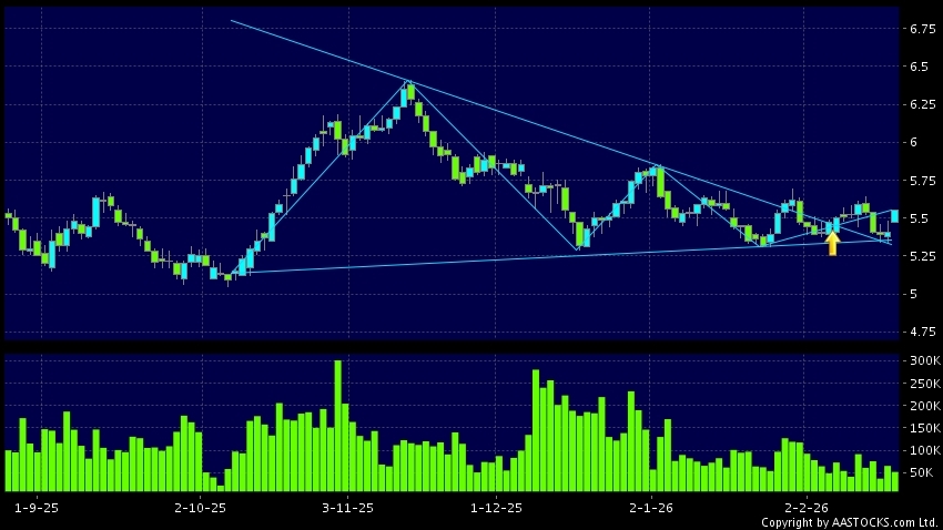 Triangle Breakout means the volatility of price movement is decreasing, stock price finally broke the top of triangle. An upward trend will start.(HK stocks quote is delayed for at least 15 mins.Short Selling Data as at 2026-02-26 16:25.)