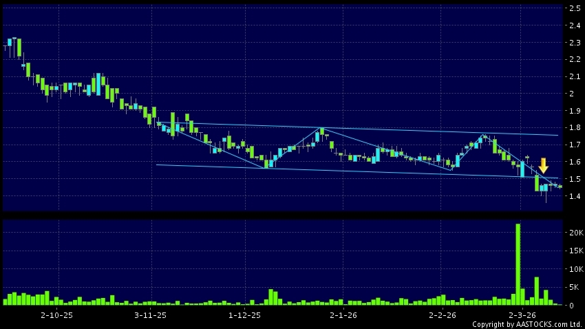 Range Breakout means stock price moved in a range recently, and it broke the bottom of the range finally. Investor should watch closely.(HK stocks quote is delayed for at least 15 mins.Short Selling Data as at 2026-03-19 16:25.)