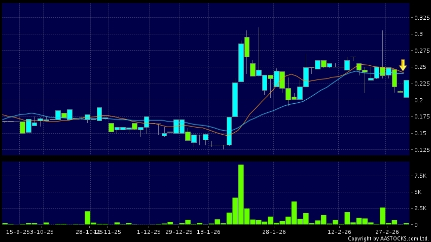 Disclaimer:The information, financial market data, quotes, charts, statistics and / or various technical analysis indicators are automatically generated based on the analyses and interpretations of publicly available information and should be used as references only at your own discretion. Such automatically generated content does not reflect the views or opinions of AASTOCKS.com Limited nor does AASTOCKS.com Limited make any guarantees to their accuracy, completeness, timeliness or correctness. You are advised to consult independent professional advice to verify pricing information or to obtain more detailed market information. Any uses of information or trades executed following the said automatically generated content are taken at your own risk for your own account.