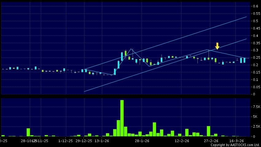 Disclaimer:The information, financial market data, quotes, charts, statistics and / or various technical analysis indicators are automatically generated based on the analyses and interpretations of publicly available information and should be used as references only at your own discretion. Such automatically generated content does not reflect the views or opinions of AASTOCKS.com Limited nor does AASTOCKS.com Limited make any guarantees to their accuracy, completeness, timeliness or correctness. You are advised to consult independent professional advice to verify pricing information or to obtain more detailed market information. Any uses of information or trades executed following the said automatically generated content are taken at your own risk for your own account.