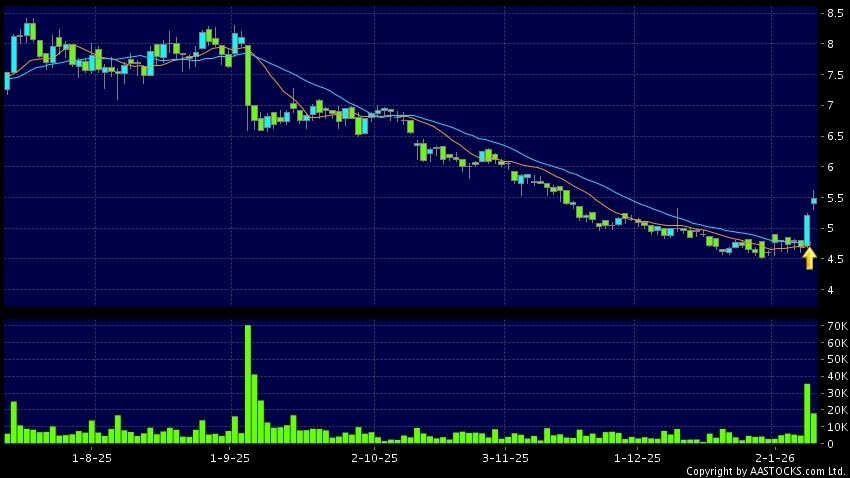 Disclaimer:The information, financial market data, quotes, charts, statistics and / or various technical analysis indicators are automatically generated based on the analyses and interpretations of publicly available information and should be used as references only at your own discretion. Such automatically generated content does not reflect the views or opinions of AASTOCKS.com Limited nor does AASTOCKS.com Limited make any guarantees to their accuracy, completeness, timeliness or correctness. You are advised to consult independent professional advice to verify pricing information or to obtain more detailed market information. Any uses of information or trades executed following the said automatically generated content are taken at your own risk for your own account.