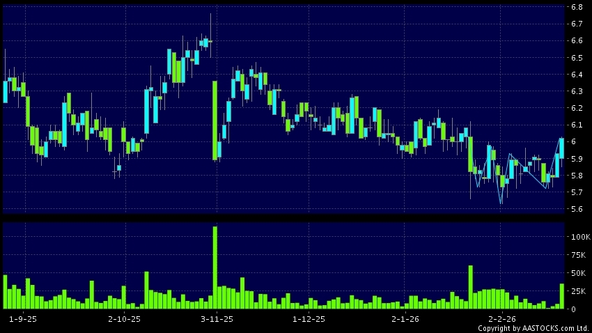Disclaimer:The information, financial market data, quotes, charts, statistics and / or various technical analysis indicators are automatically generated based on the analyses and interpretations of publicly available information and should be used as references only at your own discretion. Such automatically generated content does not reflect the views or opinions of AASTOCKS.com Limited nor does AASTOCKS.com Limited make any guarantees to their accuracy, completeness, timeliness or correctness. You are advised to consult independent professional advice to verify pricing information or to obtain more detailed market information. Any uses of information or trades executed following the said automatically generated content are taken at your own risk for your own account.