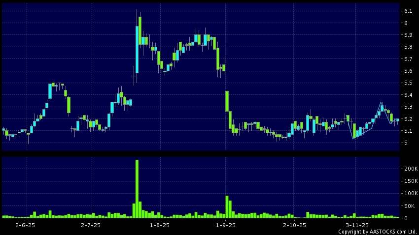 Disclaimer:The information, financial market data, quotes, charts, statistics and / or various technical analysis indicators are automatically generated based on the analyses and interpretations of publicly available information and should be used as references only at your own discretion. Such automatically generated content does not reflect the views or opinions of AASTOCKS.com Limited nor does AASTOCKS.com Limited make any guarantees to their accuracy, completeness, timeliness or correctness. You are advised to consult independent professional advice to verify pricing information or to obtain more detailed market information. Any uses of information or trades executed following the said automatically generated content are taken at your own risk for your own account.