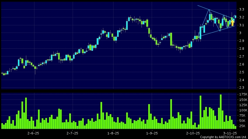 CGN POWER(01816.HK) shows a triangle breakout. Last printed at 3.210; rose 0.943%; on volume of 25.50M shares and turnover of $81.79MRecent PerformanceIn 3 days: +1.582%In 5 days: ...