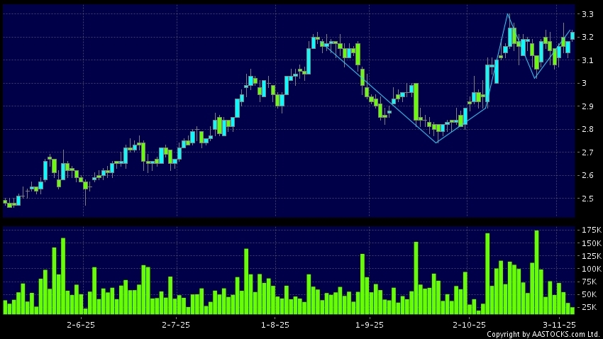 Disclaimer:The information, financial market data, quotes, charts, statistics and / or various technical analysis indicators are automatically generated based on the analyses and interpretations of publicly available information and should be used as references only at your own discretion. Such automatically generated content does not reflect the views or opinions of AASTOCKS.com Limited nor does AASTOCKS.com Limited make any guarantees to their accuracy, completeness, timeliness or correctness. You are advised to consult independent professional advice to verify pricing information or to obtain more detailed market information. Any uses of information or trades executed following the said automatically generated content are taken at your own risk for your own account.