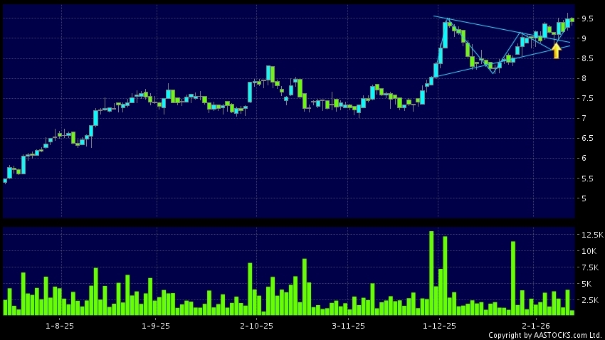 Triangle Breakout means the volatility of price movement is decreasing, stock price finally broke the top of triangle. An upward trend will start.(HK stocks quote is delayed for at least 15 mins.Short Selling Data as at 2026-02-11 16:25.)
