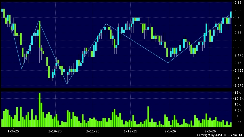 Disclaimer:The information, financial market data, quotes, charts, statistics and / or various technical analysis indicators are automatically generated based on the analyses and interpretations of publicly available information and should be used as references only at your own discretion. Such automatically generated content does not reflect the views or opinions of AASTOCKS.com Limited nor does AASTOCKS.com Limited make any guarantees to their accuracy, completeness, timeliness or correctness. You are advised to consult independent professional advice to verify pricing information or to obtain more detailed market information. Any uses of information or trades executed following the said automatically generated content are taken at your own risk for your own account.