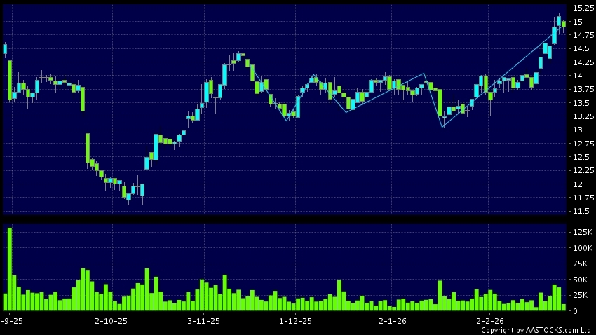 Disclaimer:The information, financial market data, quotes, charts, statistics and / or various technical analysis indicators are automatically generated based on the analyses and interpretations of publicly available information and should be used as references only at your own discretion. Such automatically generated content does not reflect the views or opinions of AASTOCKS.com Limited nor does AASTOCKS.com Limited make any guarantees to their accuracy, completeness, timeliness or correctness. You are advised to consult independent professional advice to verify pricing information or to obtain more detailed market information. Any uses of information or trades executed following the said automatically generated content are taken at your own risk for your own account.
