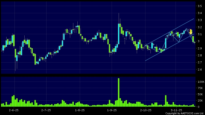 SSY GROUP(02005.HK) appears a downside range breakout. Last printed at 2.980; fell 0.334%; on volume of 3.01M shares and turnover of $8.95MRecent PerformanceIn 3 days: -5.397%In 5 ...