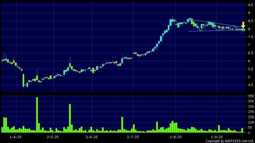 Triangle Breakout means the volatility of price movement is decreasing, stock price finally broke the bottom of triangle. A downward trend will start.(HK stocks quote is delayed for at least 15 mins.Short Selling Data as at 2025-10-10 16:25.)