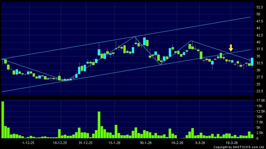 CNGR(02579.HK) appears a downside range breakout. Last printed at 34.280; rose 8.481%; on volume of 2.00M shares and turnover of $66.74MRecent PerformanceIn 3 days: +7.731%In 5 day...