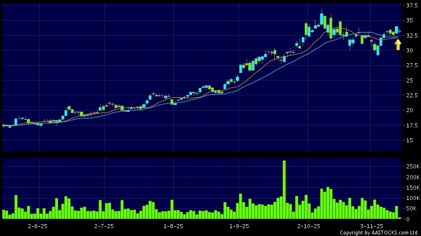 ZIJIN MINING(02899.HK)'s SMA 10 crosses above SMA 20, which is a golden cross. Last printed at 33.260; fell 2.176%; on volume of 8.50M shares and turnover of $282.38MRecent Perform...