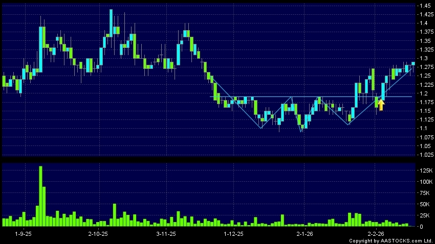 Head Shoulders bottom is a typical bullish signal, when stock price breaks the resistant level, uptrend would possibly start.(HK stocks quote is delayed for at least 15 mins.Short Selling Data as at 2026-02-25 16:25.)