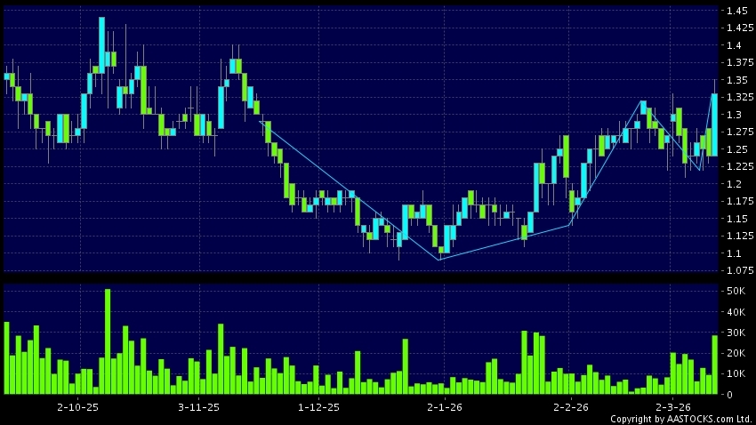 Disclaimer:The information, financial market data, quotes, charts, statistics and / or various technical analysis indicators are automatically generated based on the analyses and interpretations of publicly available information and should be used as references only at your own discretion. Such automatically generated content does not reflect the views or opinions of AASTOCKS.com Limited nor does AASTOCKS.com Limited make any guarantees to their accuracy, completeness, timeliness or correctness. You are advised to consult independent professional advice to verify pricing information or to obtain more detailed market information. Any uses of information or trades executed following the said automatically generated content are taken at your own risk for your own account.