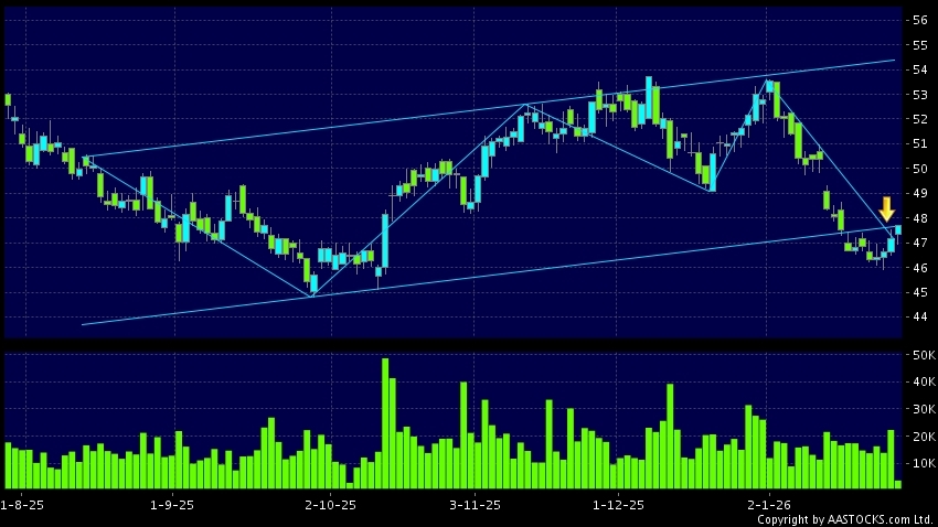 CM BANK(03968.HK) appears a downside range breakout. Last printed at 47.760; rose 1.229%; on volume of 3.79M shares and turnover of $179.34MRecent PerformanceIn 3 days: +2.931%In 5...