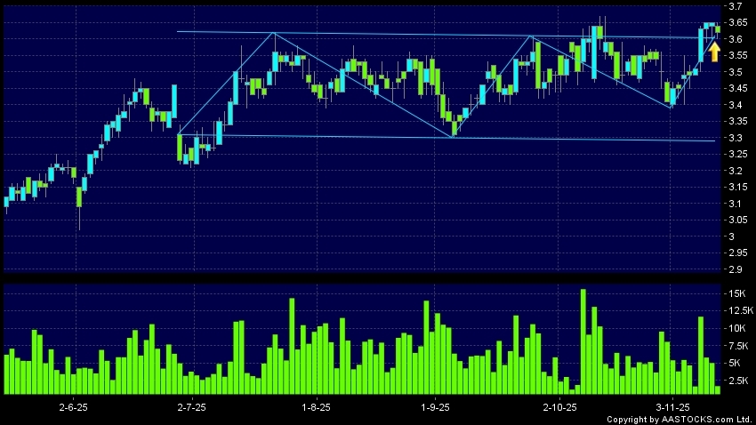 CHINA CRSC(03969.HK) appears an upside range breakout. Last printed at 3.620; fell 0.822%; on volume of 1.67M shares and turnover of $6.05MRecent PerformanceIn 3 days: -0.275%In 5 ...