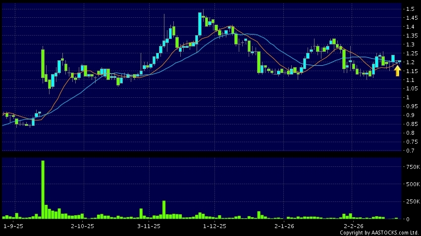 EVERG SERVICES(06666.HK)  +0.010 (+0.926%)   's SMA 10 crosses above SMA 20, which is a golden cross. Last printed at 1.220; rose 0.826%; on volume of 2.21M shares and turnover of $2.66M