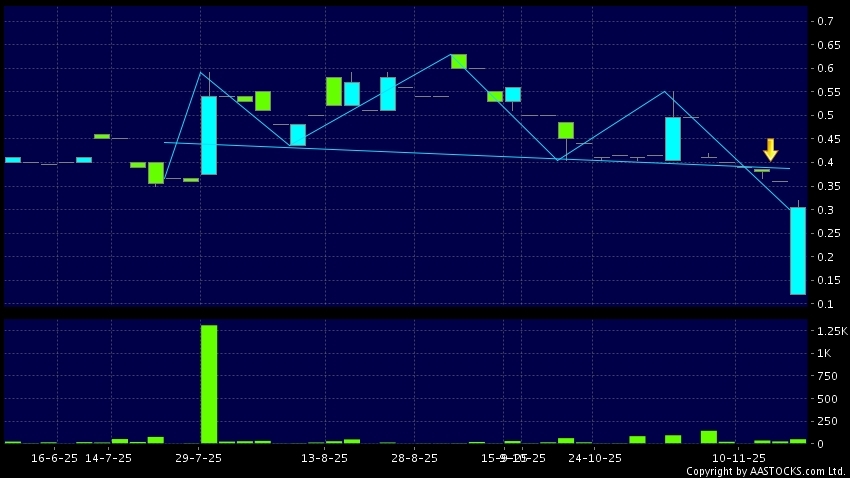 TRUE PARTNER(08657.HK) appears a downside breakout, dropped below the neckline. Last printed at 0.265; fell 26.389%; on volume of 86.00K shares and turnover of $25.32KRecent Perfor...