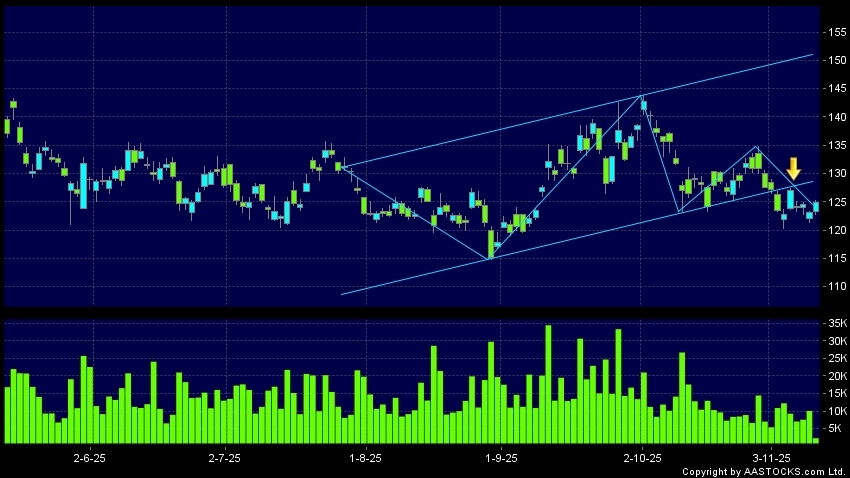 JD-SW(09618.HK)  +1.600 (+1.300%)    Short selling $165.54M; Ratio 14.601%   appears a downside range breakout. Last printed at 125.000; rose 1.543%; on volume of 2.33M shares and turnover of $288.84M
