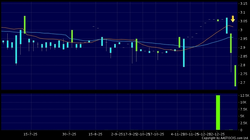 Disclaimer:The information, financial market data, quotes, charts, statistics and / or various technical analysis indicators are automatically generated based on the analyses and interpretations of publicly available information and should be used as references only at your own discretion. Such automatically generated content does not reflect the views or opinions of AASTOCKS.com Limited nor does AASTOCKS.com Limited make any guarantees to their accuracy, completeness, timeliness or correctness. You are advised to consult independent professional advice to verify pricing information or to obtain more detailed market information. Any uses of information or trades executed following the said automatically generated content are taken at your own risk for your own account.
