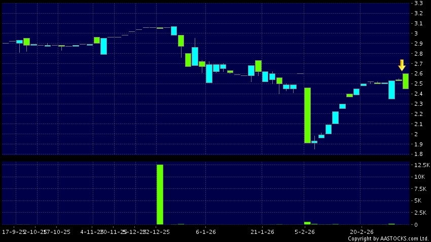 Disclaimer:The information, financial market data, quotes, charts, statistics and / or various technical analysis indicators are automatically generated based on the analyses and interpretations of publicly available information and should be used as references only at your own discretion. Such automatically generated content does not reflect the views or opinions of AASTOCKS.com Limited nor does AASTOCKS.com Limited make any guarantees to their accuracy, completeness, timeliness or correctness. You are advised to consult independent professional advice to verify pricing information or to obtain more detailed market information. Any uses of information or trades executed following the said automatically generated content are taken at your own risk for your own account.