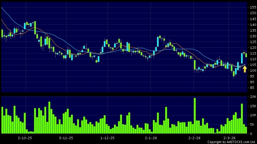 AKESO(09926.HK)'s SMA 10 crosses above SMA 20, which is a golden cross. Last printed at 111.800; fell 2.698%; on volume of 3.73M shares and turnover of $423.09MRecent PerformanceIn...