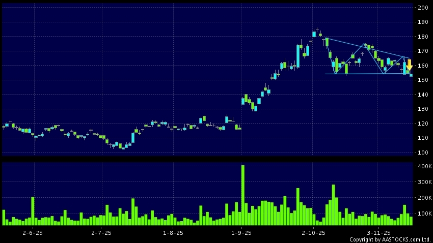 Triangle Breakout means the volatility of price movement is decreasing, stock price finally broke the bottom of triangle. A downward trend will start.(HK stocks quote is delayed for at least 15 mins.Short Selling Data as at 2025-11-18 16:25.)