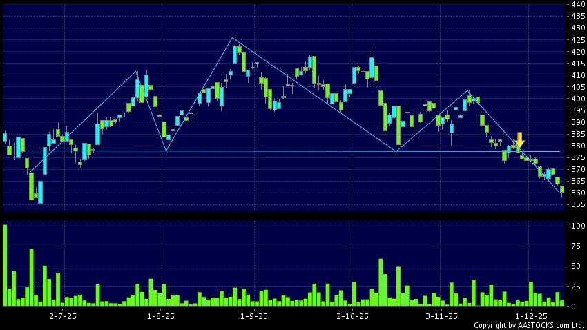 Head Shoulders top is a typical bearish signal, when stock price breaks the supportive level, downtrend would possibly start.(HK stocks quote is delayed for at least 15 mins.Short Selling Data as at 2025-12-10 16:25.)