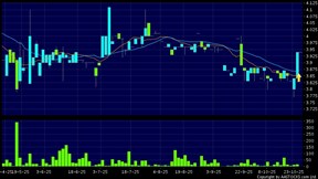 CHEVALIER INT'L(00025.HK) shows a triple bottom reversal. Last printed at 4.010; fell 0.249%; on volume of 0.00 shares and turnover of $0.00Recent PerformanceIn 3 days: +4.427%In 5 days: +4.700%In 10 days: +4.427%Recent transaction volume statistics:Volume of last trading day: 2.00K sharesAverage volume over the past 5 days: 7.4...