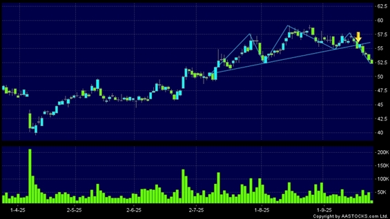 PING AN(02318.HK) +0.550 (+1.049%) Short selling $770.58M; Ratio 25.807% appears a downside breakout, dropped below the neckline. Last printed at 52.350; fell 1.133%; on volume of 19.94M shares and turnover of $1.05BRecent PerformanceIn 3 days: -3.502%In 5 days: -4.905%In 10 days: -8.479%Recent transaction volume statistics:Volume of last trading day: 50.21M sharesAverage volume over the past 5 days: 45.52M sharesTechnical analysis explanation:Head Shoulders top is a typical bearish signal, when stock price breaks the supportive level, downtrend would possibly start.(HK stocks quote is delayed for at least 15 mins.Short Selling Data as at 2025-10-14 16:25.)Related NewsView more stocks with downward technical trends >Disclaimer:The information, financial market data, quotes, charts, statistics and / or various technical analysis indicators are automatically generated based on the analyses and interpretations of publicly available information and should be used as references only at your own discretion. Such automatically generated content does not reflect the views or opinions of AASTOCKS.com Limited nor does AASTOCKS.com Limited make any guarantees to their accuracy, completeness, timeliness or correctness. You are advised to consult independent professional advice to verify pricing information or to obtain more detailed market information. Any uses of information or trades executed following the said automatically generated content are taken at your own risk for your own account.