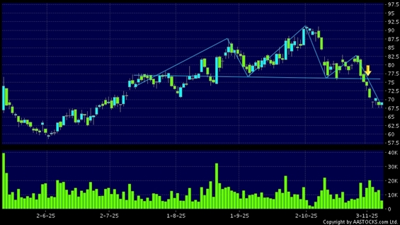 SUNNY OPTICAL(02382.HK) -1.750 (-2.534%) Short selling $152.99M; Ratio 21.580% appears a downside breakout, dropped below the neckline. Last printed at 69.050; rose 0.803%; on volume of 6.05M shares and turnover of $413.05MRecent PerformanceIn 3 days: -0.289%In 5 days: -6.752%In 10 days: -13.634%Recent transaction volume statistics:Volume of last trading day: 13.34M sharesAverage volume over the past 5 days: 15.20M sharesTechnical analysis explanation:Head Shoulders top is a typical bearish signal, when stock price breaks the supportive level, downtrend would possibly start.(HK stocks quote is delayed for at least 15 mins.Short Selling Data as at 2025-11-17 16:25.)Related NewsView more stocks with downward technical trends >Disclaimer:The information, financial market data, quotes, charts, statistics and / or various technical analysis indicators are automatically generated based on the analyses and interpretations of publicly available information and should be used as references only at your own discretion. Such automatically generated content does not reflect the views or opinions of AASTOCKS.com Limited nor does AASTOCKS.com Limited make any guarantees to their accuracy, completeness, timeliness or correctness. You are advised to consult independent professional advice to verify pricing information or to obtain more detailed market information. Any uses of information or trades executed following the said automatically generated content are taken at your own risk for your own account.