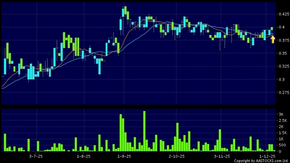 TECHNOVATOR(01206.HK) -0.005 (-1.389%) 's SMA 10 crosses above SMA 20, which is a golden cross. Last printed at 0.380; fell 3.797%; on volume of 200.00K shares and turnover of $75.89KRecent PerformanceIn 3 days: -3.797%In 5 days: +0.000%In 10 days: +1.333%Recent transaction volume statistics:Volume of last trading day: 572.00K sharesAverage volume over the past 5 days: 291.60K sharesTechnical analysis explanation:Golden cross is a bullish signal, which the short term SMA crosses above long term SMA, such as SMA 50 crosses above SMA 250.(HK stocks quote is delayed for at least 15 mins.)Related NewsView more stocks with upward technical trends >Disclaimer:The information, financial market data, quotes, charts, statistics and / or various technical analysis indicators are automatically generated based on the analyses and interpretations of publicly available information and should be used as references only at your own discretion. Such automatically generated content does not reflect the views or opinions of AASTOCKS.com Limited nor does AASTOCKS.com Limited make any guarantees to their accuracy, completeness, timeliness or correctness. You are advised to consult independent professional advice to verify pricing information or to obtain more detailed market information. Any uses of information or trades executed following the said automatically generated content are taken at your own risk for your own account.