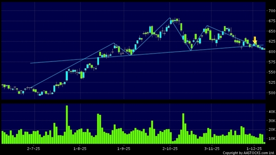 TENCENT(00700.HK) -1.000 (-0.167%) Short selling $516.74M; Ratio 7.960% appears a downside breakout, dropped below the neckline. Last printed at 605.000; fell 0.820%; on volume of 6.14M shares and turnover of $3.73BRecent PerformanceIn 3 days: -0.982%In 5 days: -2.341%In 10 days: -3.122%Recent transaction volume statistics:Volume of last trading day: 14.64M sharesAverage volume over the past 5 days: 13.01M sharesTechnical analysis explanation:Head Shoulders top is a typical bearish signal, when stock price breaks the supportive level, downtrend would possibly start.(HK stocks quote is delayed for at least 15 mins.Short Selling Data as at 2025-12-31 12:25.)Related NewsView more stocks with downward technical trends >Disclaimer:The information, financial market data, quotes, charts, statistics and / or various technical analysis indicators are automatically generated based on the analyses and interpretations of publicly available information and should be used as references only at your own discretion. Such automatically generated content does not reflect the views or opinions of AASTOCKS.com Limited nor does AASTOCKS.com Limited make any guarantees to their accuracy, completeness, timeliness or correctness. You are advised to consult independent professional advice to verify pricing information or to obtain more detailed market information. Any uses of information or trades executed following the said automatically generated content are taken at your own risk for your own account.
