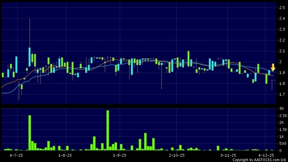 FIN STREET SEC(01476.HK) +0.040 (+2.151%) 's SMA 10 crosses below SMA 20, which is a death cross. Last printed at 1.830; Flattish; on volume of 0.00 shares and turnover of $0.00Recent PerformanceIn 3 days: -4.687%In 5 days: -4.687%In 10 days: -3.175%Recent transaction volume statistics:Average volume over the past 5 days: 8.20K sharesTechnical analysis explanation:Death cross is a bearish signal, which the short term SMA crosses below long term SMA, such as SMA 50 crosses below SMA 250. Investor should watch closely.(HK stocks quote is delayed for at least 15 mins.)Related NewsView more stocks with downward technical trends >Disclaimer:The information, financial market data, quotes, charts, statistics and / or various technical analysis indicators are automatically generated based on the analyses and interpretations of publicly available information and should be used as references only at your own discretion. Such automatically generated content does not reflect the views or opinions of AASTOCKS.com Limited nor does AASTOCKS.com Limited make any guarantees to their accuracy, completeness, timeliness or correctness. You are advised to consult independent professional advice to verify pricing information or to obtain more detailed market information. Any uses of information or trades executed following the said automatically generated content are taken at your own risk for your own account.