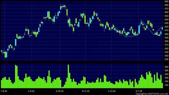 TENCENT(00700.HK) +1.000 (+0.188%) Short selling $494.04M; Ratio 12.869% shows a Cup-With-A-Handle breakout. Last printed at 619.500; rose 2.059%; on volume of 13.27M shares and turnover of $8.17BRecent PerformanceIn 3 days: +4.118%In 5 days: +2.822%In 10 days: -2.133%Recent transaction volume statistics:Volume of last trading day: 23.89M sharesAverage volume over the past 5 days: 20.74M sharesTechnical analysis explanation:Cup with a handle is a typical bullish signal.(HK stocks quote is delayed for at least 15 mins.Short Selling Data as at 2026-02-16 12:25.)Related NewsView more stocks with upward technical trends >Disclaimer:The information, financial market data, quotes, charts, statistics and / or various technical analysis indicators are automatically generated based on the analyses and interpretations of publicly available information and should be used as references only at your own discretion. Such automatically generated content does not reflect the views or opinions of AASTOCKS.com Limited nor does AASTOCKS.com Limited make any guarantees to their accuracy, completeness, timeliness or correctness. You are advised to consult independent professional advice to verify pricing information or to obtain more detailed market information. Any uses of information or trades executed following the said automatically generated content are taken at your own risk for your own account.