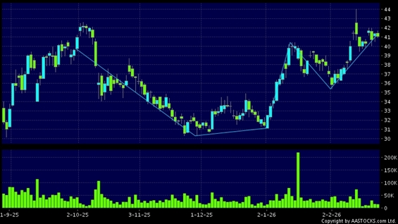 WUXI BIO(02269.HK) +0.900 (+2.540%) Short selling $528.88M; Ratio 46.889% shows a Cup-With-A-Handle breakout. Last printed at 41.060; fell 0.725%; on volume of 15.18M shares and turnover of $626.17MRecent PerformanceIn 3 days: -1.488%In 5 days: +1.383%In 10 days: +7.374%Recent transaction volume statistics:Volume of last trading day: 15.61M sharesAverage volume over the past 5 days: 14.64M sharesTechnical analysis explanation:Cup with a handle is a typical bullish signal.(HK stocks quote is delayed for at least 15 mins.Short Selling Data as at 2026-03-06 16:25.)Related NewsView more stocks with upward technical trends >Disclaimer:The information, financial market data, quotes, charts, statistics and / or various technical analysis indicators are automatically generated based on the analyses and interpretations of publicly available information and should be used as references only at your own discretion. Such automatically generated content does not reflect the views or opinions of AASTOCKS.com Limited nor does AASTOCKS.com Limited make any guarantees to their accuracy, completeness, timeliness or correctness. You are advised to consult independent professional advice to verify pricing information or to obtain more detailed market information. Any uses of information or trades executed following the said automatically generated content are taken at your own risk for your own account.