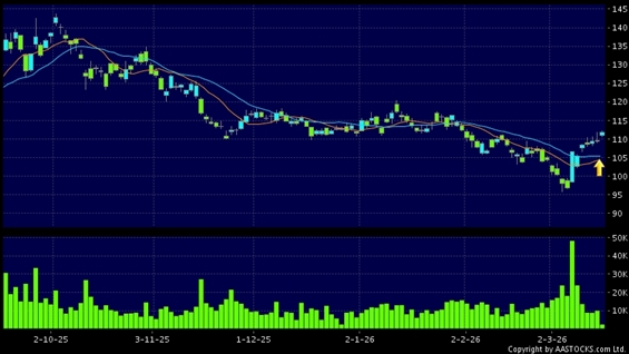 JD-SW(09618.HK) +0.100 (+0.088%) Short selling $342.69M; Ratio 28.609% 's SMA 10 crosses above SMA 20, which is a golden cross. Last printed at 111.800; rose 2.007%; on volume of 2.44M shares and turnover of $272.29MRecent PerformanceIn 3 days: +2.947%In 5 days: +5.972%In 10 days: +10.365%Recent transaction volume statistics:Volume of last trading day: 9.90M sharesAverage volume over the past 5 days: 12.97M sharesTechnical analysis explanation:Golden cross is a bullish signal, which the short term SMA crosses above long term SMA, such as SMA 50 crosses above SMA 250.(HK stocks quote is delayed for at least 15 mins.Short Selling Data as at 2026-03-27 16:25.)Related NewsView more stocks with upward technical trends >Disclaimer:The information, financial market data, quotes, charts, statistics and / or various technical analysis indicators are automatically generated based on the analyses and interpretations of publicly available information and should be used as references only at your own discretion. Such automatically generated content does not reflect the views or opinions of AASTOCKS.com Limited nor does AASTOCKS.com Limited make any guarantees to their accuracy, completeness, timeliness or correctness. You are advised to consult independent professional advice to verify pricing information or to obtain more detailed market information. Any uses of information or trades executed following the said automatically generated content are taken at your own risk for your own account.