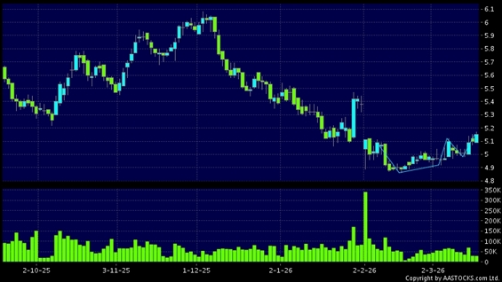 CHINA TELECOM(00728.HK) -0.080 (-1.610%) Short selling $55.75M; Ratio 14.364% shows a Cup-With-A-Handle breakout. Last printed at 5.150; rose 0.980%; on volume of 28.60M shares and turnover of $147.24MRecent PerformanceIn 3 days: +2.794%In 5 days: +2.794%In 10 days: +3.622%Recent transaction volume statistics:Volume of last trading day: 29.18M sharesAverage volume over the past 5 days: 45.48M sharesTechnical analysis explanation:Cup with a handle is a typical bullish signal.(HK stocks quote is delayed for at least 15 mins.Short Selling Data as at 2026-03-24 16:25.)Related NewsView more stocks with upward technical trends >Disclaimer:The information, financial market data, quotes, charts, statistics and / or various technical analysis indicators are automatically generated based on the analyses and interpretations of publicly available information and should be used as references only at your own discretion. Such automatically generated content does not reflect the views or opinions of AASTOCKS.com Limited nor does AASTOCKS.com Limited make any guarantees to their accuracy, completeness, timeliness or correctness. You are advised to consult independent professional advice to verify pricing information or to obtain more detailed market information. Any uses of information or trades executed following the said automatically generated content are taken at your own risk for your own account.