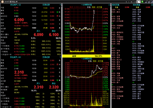 独家创新设计A+H版面风格,突出同一上市公司香港和内地走势的对比,实时观测市场异动。