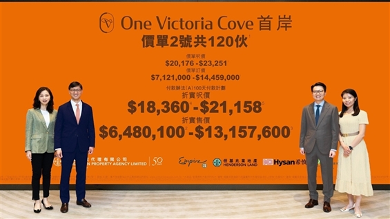 恒地(00012.HK)、希慎兴业(00014.HK)及帝国集团合作发展的红磡首岸第1期(第2座)今日(20日)加推价单第2号,折实售价由648.01万元起,折实尺价由18,360元起。 价单第2号涉及120伙,户型涵盖两房至三房,当中包括115伙两房及5伙三房单位。价单售价由712.1万至1,445.9万元,价单尺价由20,176至23,251元;折实售价则由648.01万至1,315.76万元,折实尺价由18,360至21,158元,项目将於短期内公布销售安排。 帝国集团项目发展总监曾申翘表示,该批最低售价为5楼M单位,实用面积339平方尺,两房间隔,折实售价648.01万元,折实尺价19,115元。 希慎兴业有限公司写字楼业务及住宅业务总监叶慕贞指,最低尺价则为15楼E单位,实用面积393平方尺,两房间隔,折实售价721.53万元,折实尺价18,360元。(sl/u)AASTOCKS新闻 |