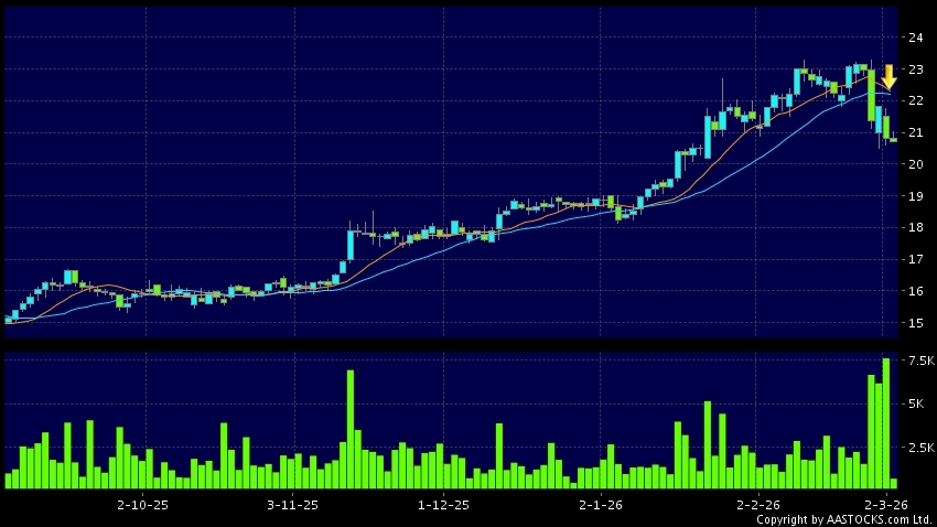 免责声明:以上金融市场数据丶报价丶图表 及/或各种技术分析指标乃根据公开资料分析和演释自动生成的,仅作参考使用。此类自动生成的内容并不代表AASTOCKS.com Limited的立场。AASTOCKS.com Limited并不保证其准确性丶完整性丶实时性或者正确性。阁下应谘询独立专业意见,以核实定价资料或获取更详细的市场信息及须为所有跟随此类自动生成的内容执行的交易或使用该内容负责。