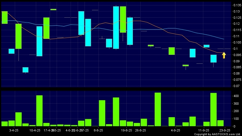 世纪建业(00079.HK) 0.000 (0.000%) 10天移动平均线升穿20天移动平均线,出现黄金交叉。现价报0.100,无升跌,成交量0.00股,成交额0.00。