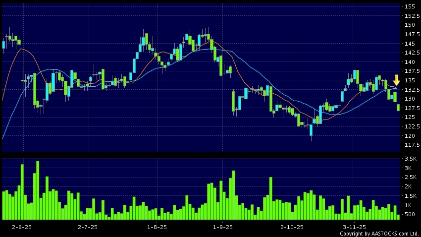 死亡交叉是一个利淡信号,指股价的短期移动平均线跌穿长期移动平均线,例如50天线跌穿250天线,在图表上构成交叉的形状。股价通常会下跌形成一个下降趋势,技术走势偏软。(港股报价延迟最少十五分钟。沽空资料截至 2025-12-04 16:25。)