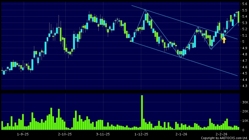 区域突破指股价在过去的一段时间只在一个范围在内活动,然後股价上升作出突破,升穿区域的顶部,技术走势向好。(港股报价延迟最少十五分钟。沽空资料截至 2026-03-10 16:25。)