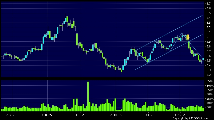 区域突破指股价在过去的一段时间只在一个范围在内活动,然後股价下跌作出突破,跌穿区域的底部,技术走势偏软。(港股报价延迟最少十五分钟。沽空资料截至 2025-12-31 12:25。)