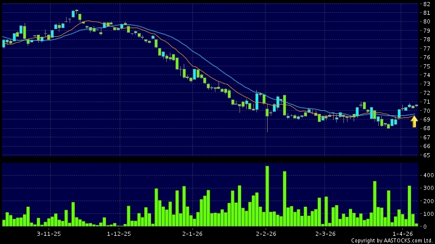 黄金交叉是一个利好讯号,指股价的短期移动平均线升穿长期移动平均线,例如50天线升穿250天线,在图表上构成交叉的形状。股价通常会上升形成一个上升趋势,技术走势向好。(港股报价延迟最少十五分钟。沽空资料截至 2026-04-13 16:25。)