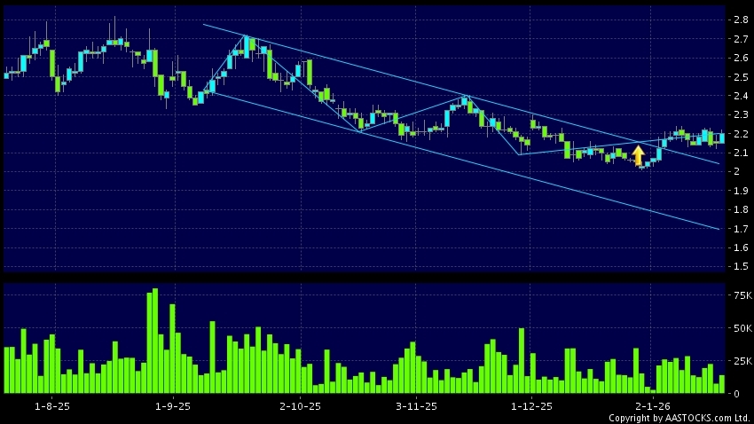 区域突破指股价在过去的一段时间只在一个范围在内活动,然後股价上升作出突破,升穿区域的顶部,技术走势向好。(港股报价延迟最少十五分钟。沽空资料截至 2026-01-22 16:25。)