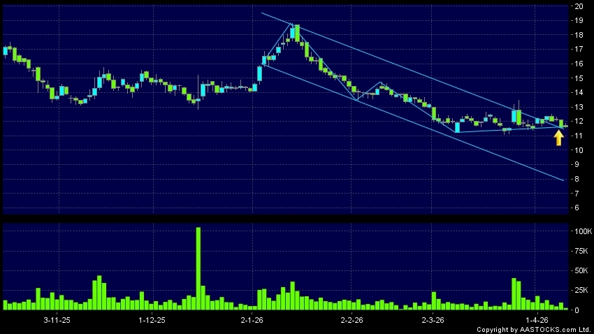 区域突破指股价在过去的一段时间只在一个范围在内活动,然後股价上升作出突破,升穿区域的顶部,技术走势向好。(港股报价延迟最少十五分钟。沽空资料截至 2026-04-21 12:25。)